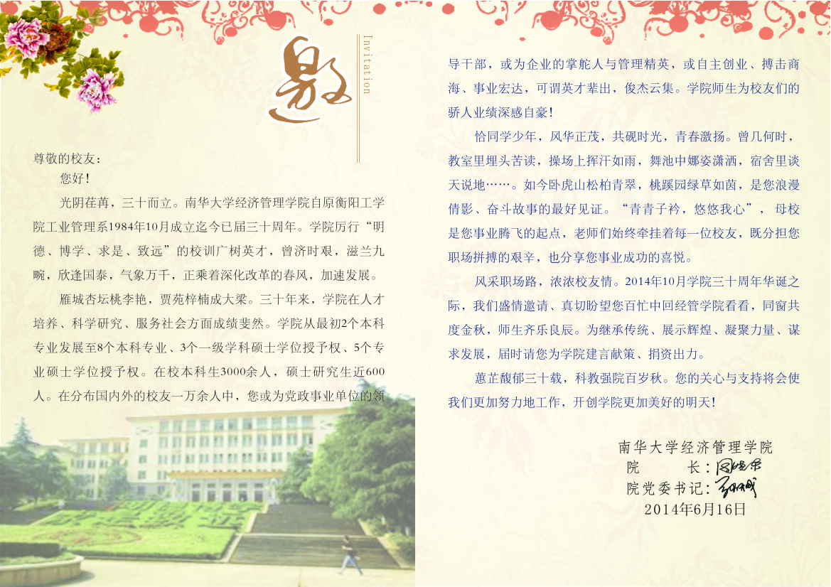 院庆邀请函内容