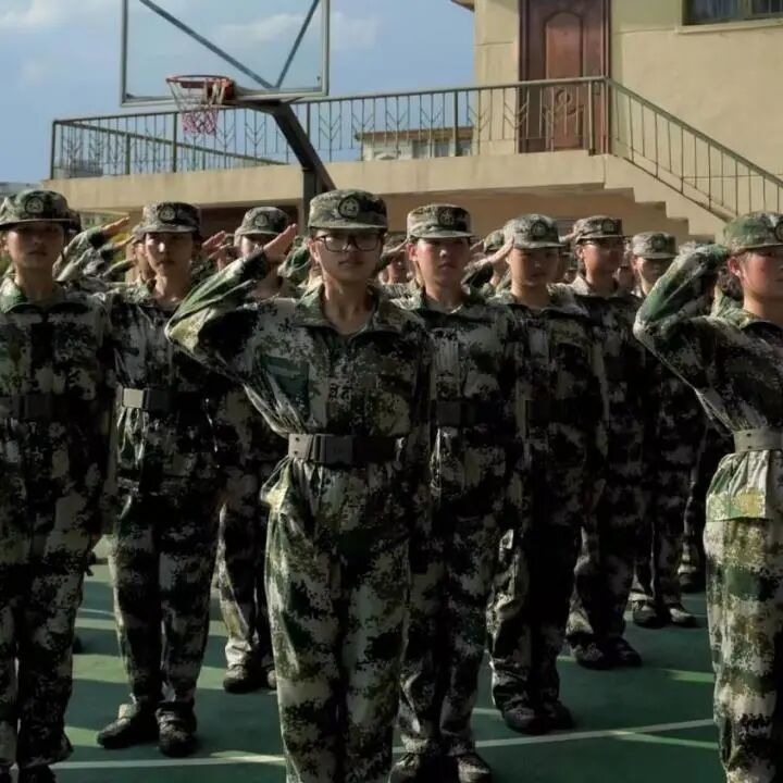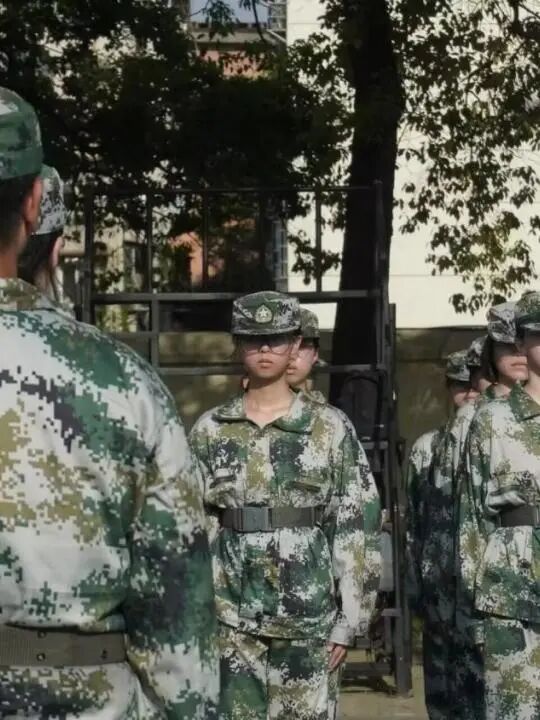 南校操场的绿茵上,身着迷彩的同学们组成整齐方阵,如青松般伫立。从最初步伐错乱、摆臂不齐,到如今“踢腿一条线、转头一个面”,每一次进步都印在广场的每一寸土地上。汗水浸湿衣衫,晒黑的脸颊上却满是坚毅,重复的踢正步、练转体,都是成长的印记。