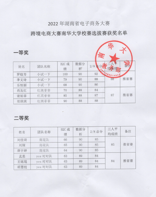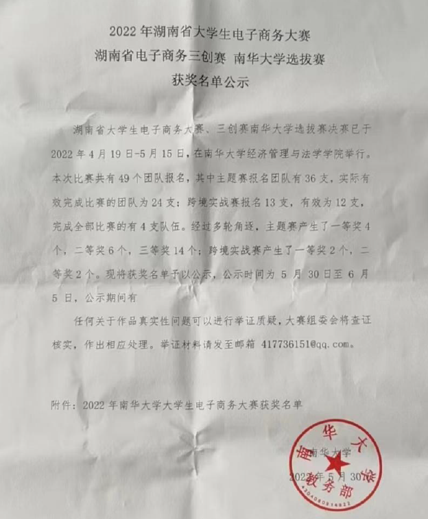 湖南省电子商务大赛获奖名单
