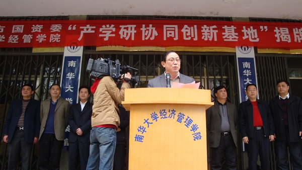 仪式上,副市长胡水龙发表了重要讲话,他指出:当前正处于我国全面建设小康社会和湖南省大力推进“四化两型”建设的关键时期,给衡阳社会经济发展带来重要战略机遇时期。PA电子是衡阳市科研、教学实力最雄厚的高校,国资委是衡阳市经济发展中的重要部门,两个单位强强联合,建立产学研协同创新基地,将会在衡阳市经济建设中发挥重要的作用。他要求该项目在实施过程中要加强组织协调,加强产学研合作,联合攻关,在加快建设“五个衡阳”的过程中建功立业。