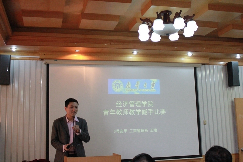 由各系推选的八位优秀青年教师一一登台,充分展示了自己的个性和风采。在比赛中,老师们准备充分、感情饱满,利用情景式、案例式、讨论式教学等多种富有创新性的教学方法,展示了一堂堂精彩的课堂教学。来自工商管理系的刘保平老师围绕清晰有逻辑的课程主线,用讲故事的方法,把知识点化繁为简、化难为易,结合幽默风趣的语言更是引来了台下阵阵笑声,将比赛推入高潮。