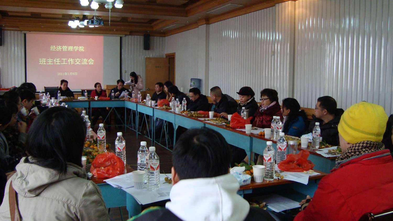 交流会由院党委副书记廖迎春主持。会上,学工室负责人李照向全体班主任通报了2010年学院各班学生英语四六级通过率、获奖学金比例、专业竞赛与科研、担任校院主要学生干部、欠费率、家庭经济与学业困难、违纪等相关情况,并对期末要进行的相关工作和班主任作了沟通。
