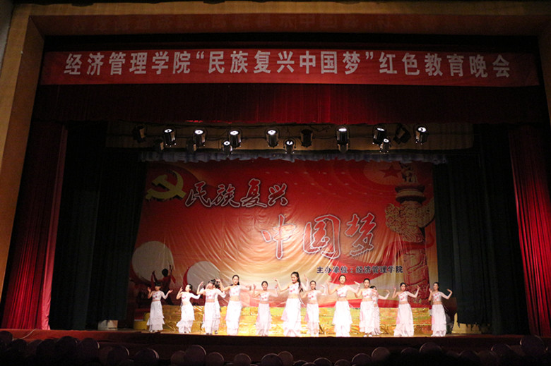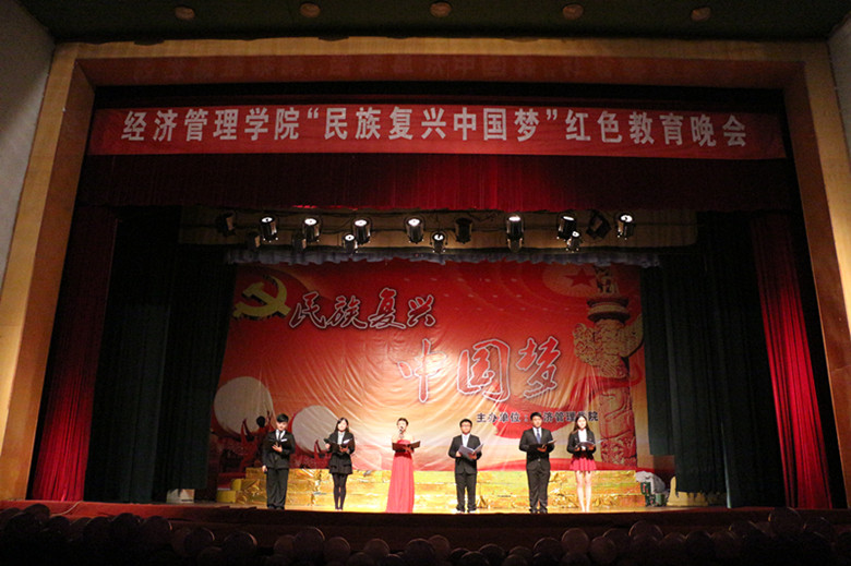 PA电子红色教育系列活动之“民族复兴中国梦”文艺晚会于11月29日晚在南校大礼堂隆重举行。校党委宣传部部长彭建军,校党委组织部副部长李望平、校学工部副部长张峰林,经济管理学院长周晓东、党委书记张天成、副院长王铁骊、党委副书记廖迎春等出席并观看了晚会。