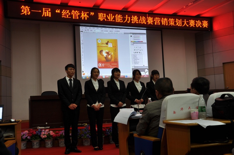 本次营销策划大赛是以班级为单位组队参赛,每组五人,决赛前经历了职业培训和初赛,共有8支代表队从31支报名参赛队伍中脱颖而出,进入决赛。决赛分两个环节:即ppt演示环节和答辩环节。参赛队伍首先进行营销策划展示和演讲,回答评委提问。随后接受评委答辩。各参赛队着装整齐,配合默契,PPT各具特色制作精美,逻辑清晰,思维敏捷,充分展现当代大学生的职业风貌。