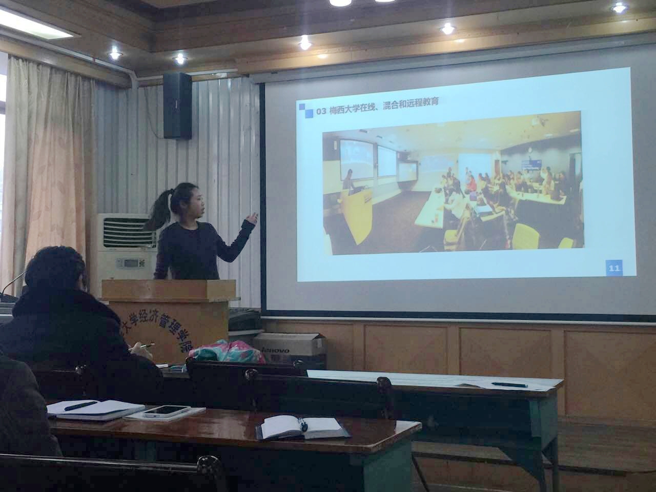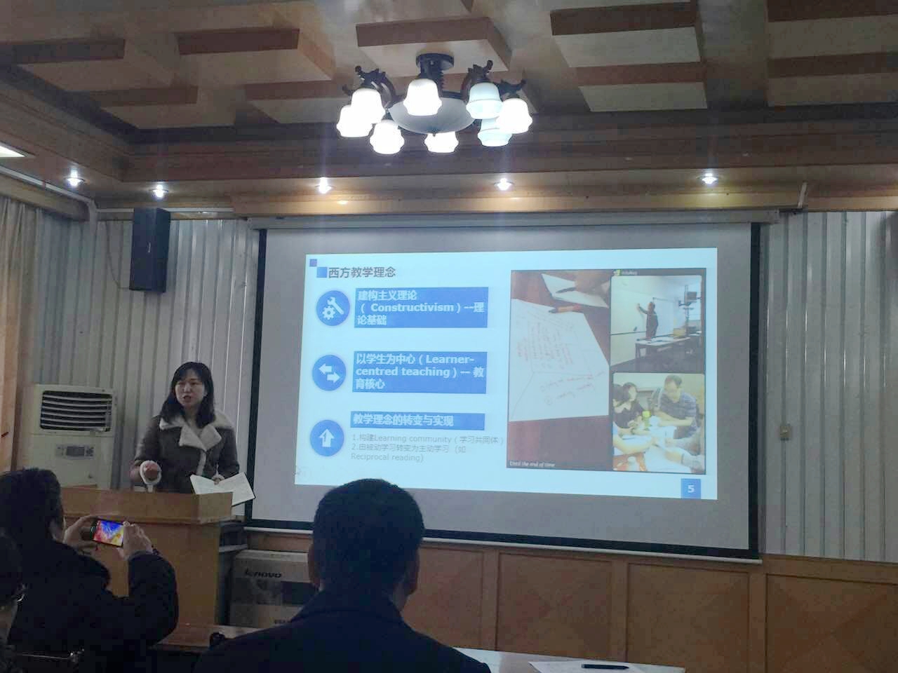 教育教学法在国际大学教育中发挥了重要的作用,我们需要联系中国教育实际,灵活借鉴,为传统课堂注入新鲜血液。张又凡、张宝心积极分享在新西兰梅西大学三个月的进修所得,采用图文并茂的双语PPT精炼地分享了国际上充分利用在线、远程资源,拓宽互动教育的时间和空间,通过灵活的课堂组织形式实现互惠式教学,将教师教学经验、学科知识的有机结合,实现“以学生为中心”教学理念的教学模式。