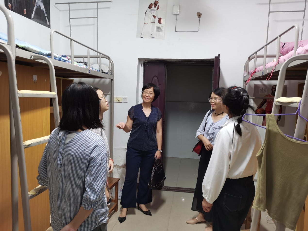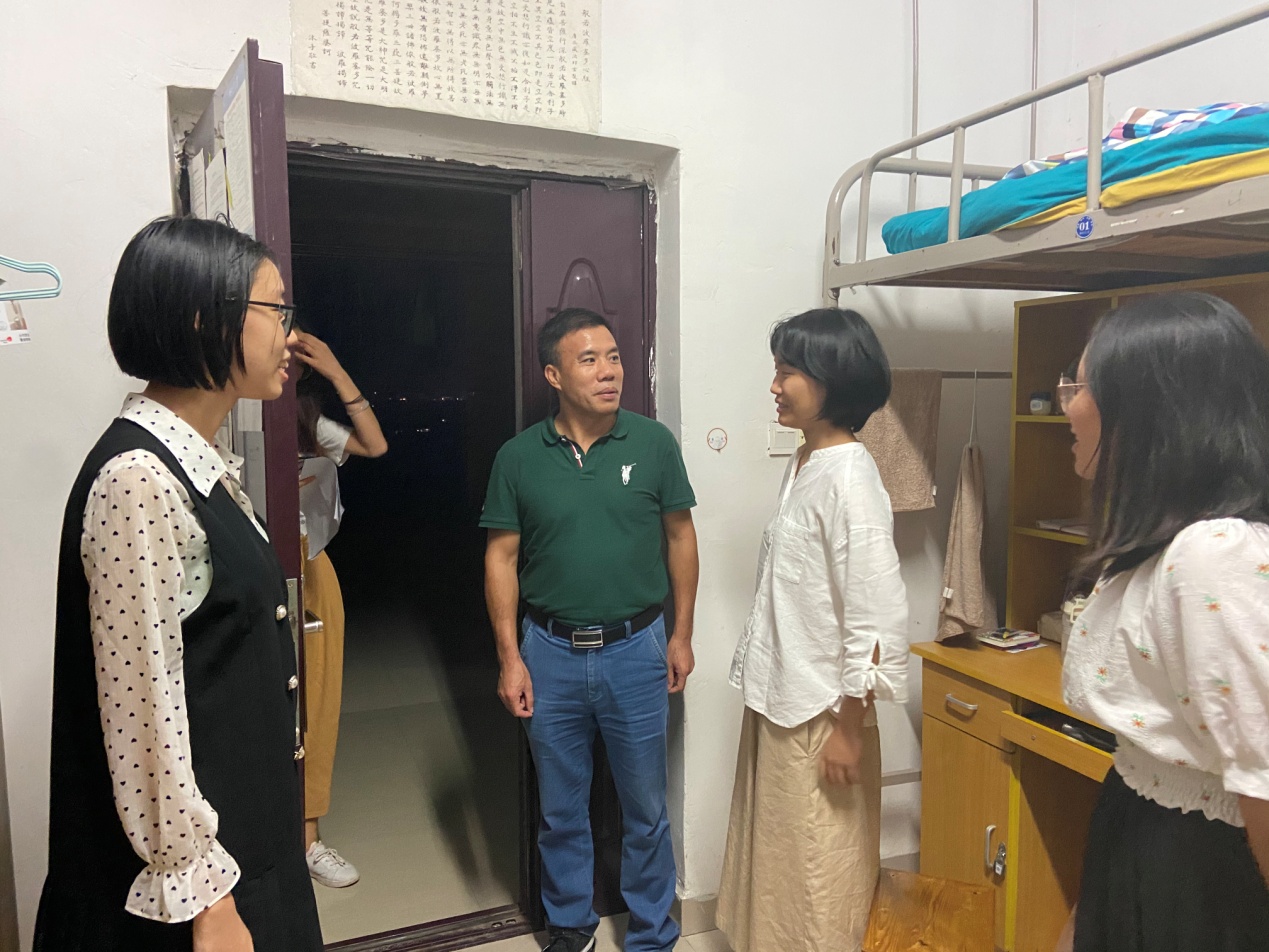 进入宿舍后,学院领导亲切地与学生们打招呼,询问宿舍卫生打扫情况,关心学生去向,并对新转入学院的学生表示了热烈的欢迎。看到和蔼亲切的老师出现在自己的寝室,学生们倍感温暖,纷纷主动谈论自己的学习生活情况,分享返校心情。