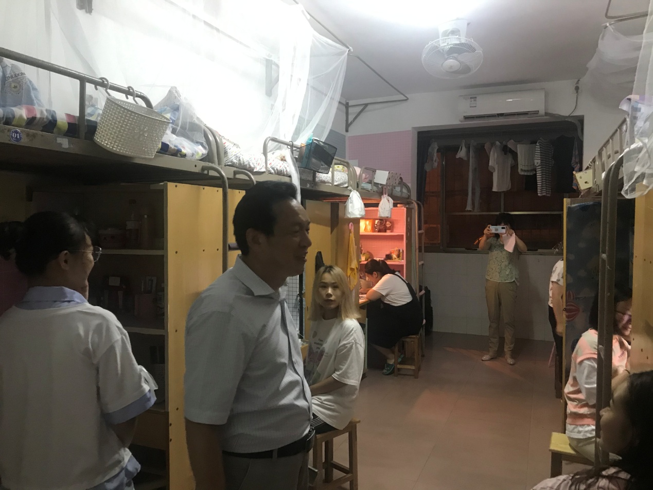 9月13日晚,PA电子,PA电子党委书记王文涛、院长王铁骊、组织员简世德、党委副书记谭建跃、副院长李冬生、陈南岳暨全体辅导员下学生寝室,检查新生入校后的学习、生活情况。