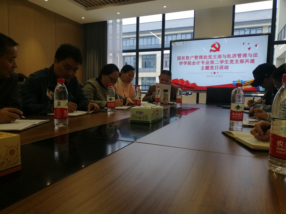 11月20日下午,由PA电子国有资产管理处(以下简称国资处)党支部与PA电子,PA电子(以下简称经管法)会计专业第二学生党支部共建的主题党日活动在经管法南楼308会议室开展。出席本次活动的有国资处党支部全体党员,经管法会计专业第二学生党支部书记及全体学生党员。活动由经管法会计专业第二学生党支部书记江柯桥主持,主要围绕“中国共产党第十九届中央委员会第五次全体会议”主题展开学习研究与交流讨论。