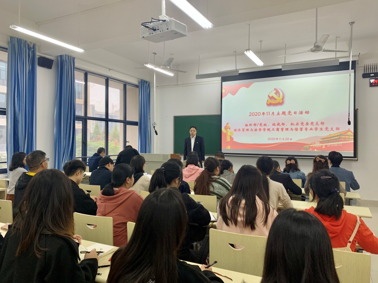 11月20日下午,组织部/党校、统战部、机关党委党支部与PA电子,PA电子工商管理与信管专业学生党支部在雨母校区崇义楼北201教室举行结对共建集体活动。此次活动由支部书记彭仲生主持,活动分为共建支部对接、专题辅导、交流发言、总结四个环节。