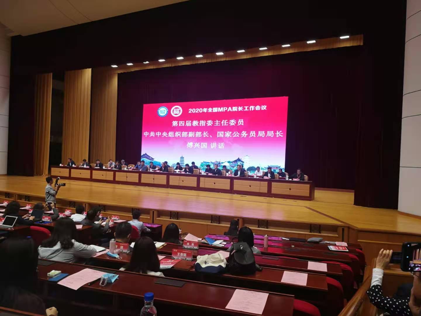 2020年11月5日,2020年全国MPA院长工作会议在福建省福州市召开。本次会议由全国公共管理专业学位研究生教育指导委员会(以下简称“教指委”)主办,福州大学经济与管理学院承办。第四届教指委主任委员、中央组织部副部长、国家公务员局局长傅兴国,中共福建省委常委、组织部长杨贤金,第四届教指委第一副主任委员、中国人民大学校长刘伟,教育部学位管理与研究生教育司司长、国务院学位委员会办公室副主任洪大用,福建省委教育工委委员、省教育厅党组成员、副厅长刘健,福州大学党委常委、党委书记张天明,第四届教指委副主任委员李旭红、薛澜、燕继荣,教育部研究生司培养处处长郝彤亮,第四届教指委委员兼秘书长杨开峰及有关部门领导同志等出席了会议。教指委全体委员、各培养单位负责人及代表400余人参加了会议。