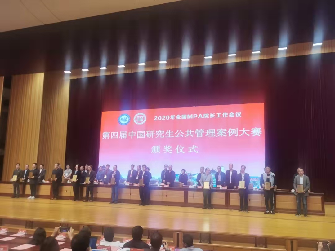 随后,会上举行了第四届中国研究生公共管理案例大赛颁奖仪式。本届大赛有来自全国187所MPA培养院校的1318支队伍参与。经过多轮匿名评选和激烈的现场展示和答辩,PA电子MPA研究生岳之南队提交的案例《“救”与“劫”的错位——以衡阳市“天价施救”事件分析高速救援治理困境》(指导老师:胡琦、彭建军;队员:王佳旺、唐倩、黄韵锦、李智、滕远一青)一路冲关,先后晋级全国100强,全国32强,并在最后的决赛中获得了中国研究生公共管理案例大赛三等奖。彭建军教授代表参赛队上台领奖。
