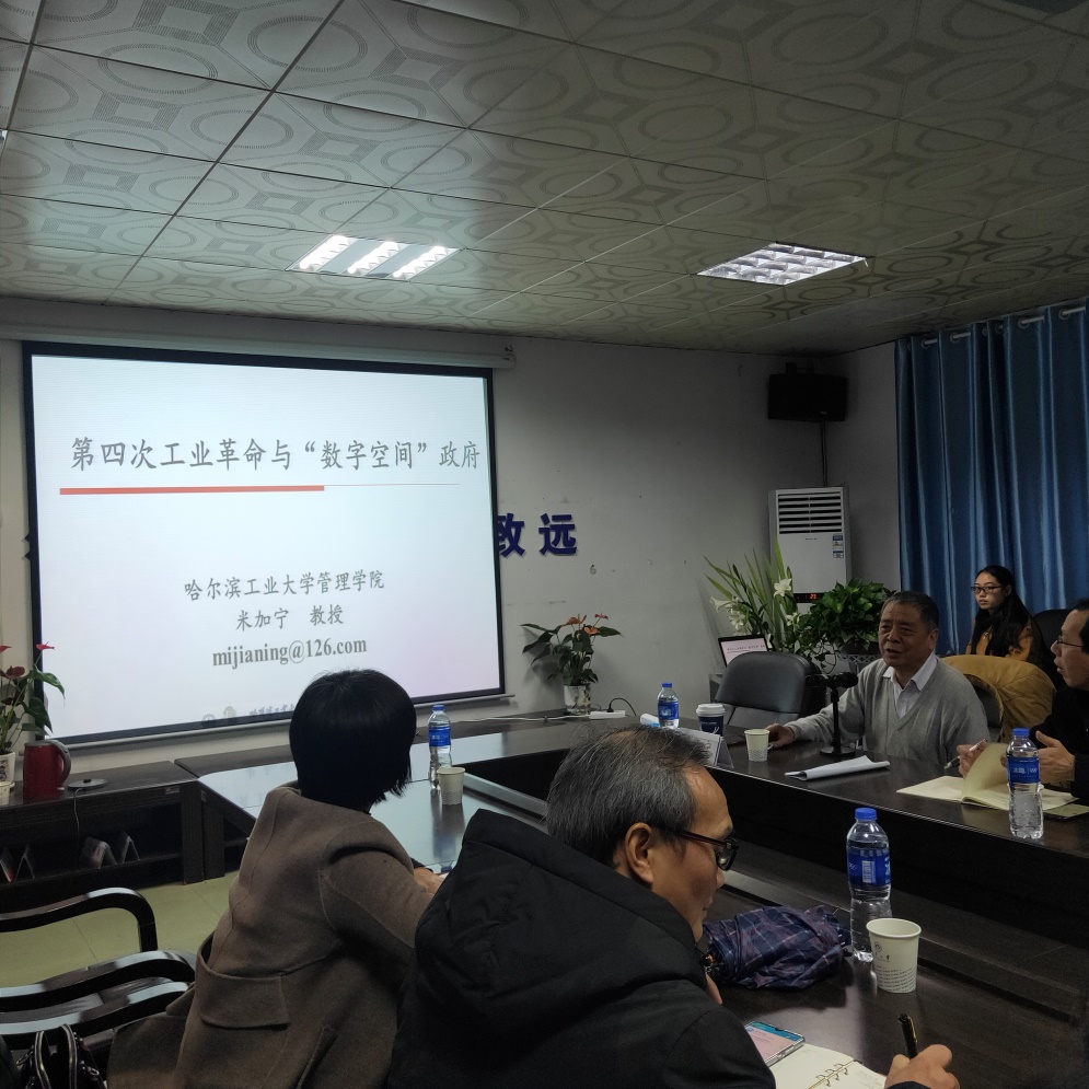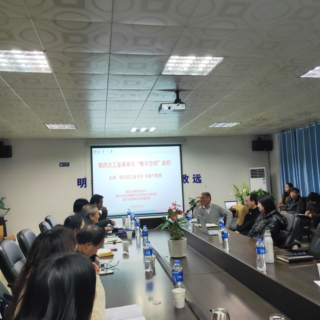2020年12月13日下午,PA电子,PA电子,PA电子公共管理系、MPA教育中心联合在我校红湘校区招生就业处一楼会议室举行以“第四次工业革命与数字空间政府”为主题的学术报告会。哈尔滨理工大学米加宁教授应邀担任本次讲座的主讲嘉宾,公共管理学科带头人彭建军教授主持此会议,公共管理系教师与公共管理系在读研究生、MPA教育中心研究生到场聆听。米加宁教授幽默又专业地讲授了目前政府服务方式的数字化变革及其面临的机遇与挑战,现场氛围十分热烈。