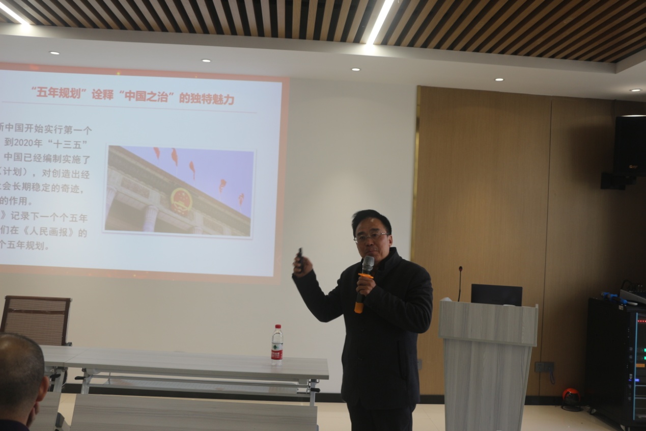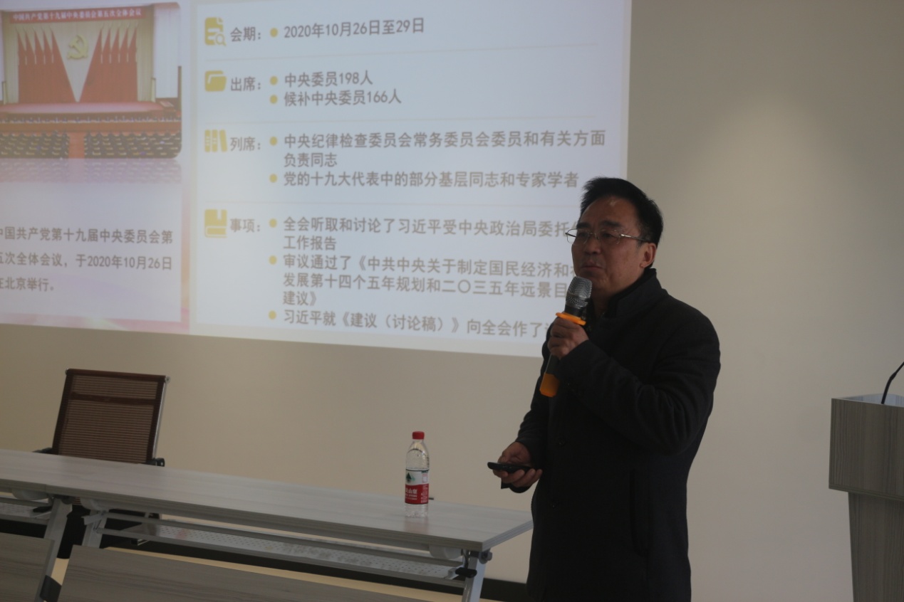 陈国民在宣讲中讲到,十九届五中全会通过的《建议》和习近平总书记所作的《说明》,是指导我们实现“十四五”奋斗目标和二〇三五年远景目标的行动纲领和行动指南,也是一篇光辉的社会主义文献。他结合自己的长期研究成果,紧密联系实际,在报告中系统归纳“十三五”时期所取得的各项成就,深刻阐述了“十四五”时期经济社会发展主要目标和二〇三五年基本实现社会主义现代化远景目标。