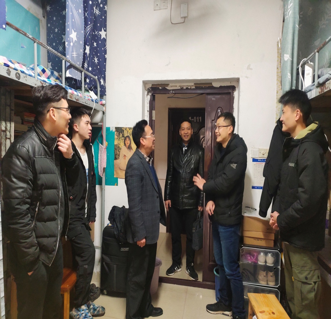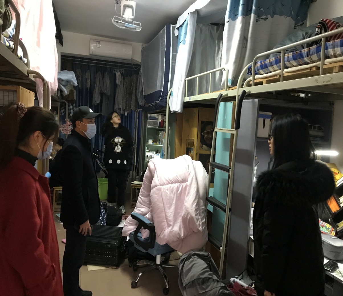 2月28日,副校长陈国民、院党委书记王文涛、院长王铁骊、组织同简世德、副院长陈南岳、李冬生、刘保平、傅华丽、院党委副书记谭建跃等一行到寝慰问学生并了解开学情况。