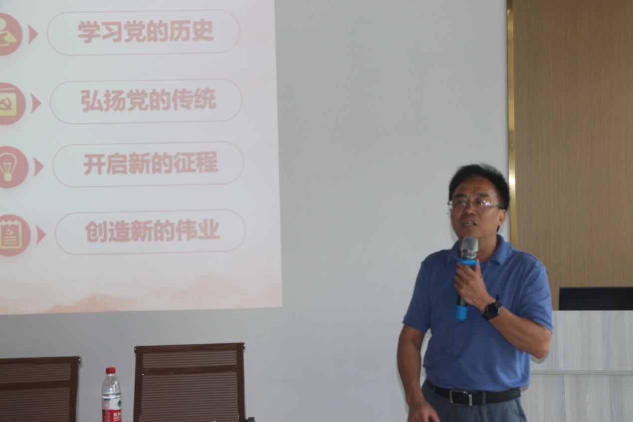 陈国民结合个人感悟与思考,围绕中国共产党100年的奋斗历程与基本经验,以及学校开展党史学习教育系列活动的会议精神,总结了党所取得的历史贡献与宝贵经验。他重点从如何理解“学史明理、学史增信、学史崇德、学史力行”的现实意义和怎样做到“学党史、悟思想、办实事、开新局”等两个方面,引导和教育学校教职员工用党的实践创造和历史经验启迪智慧、砥砺品格,用党的光荣传统和优良作风坚定信念、凝聚力量,切实推动学校的建设发展再上新台阶。
