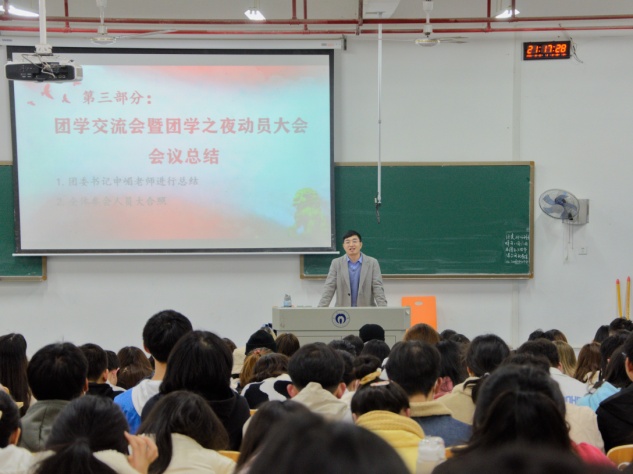 在自由交流环节,由干事主动上台发言,他们或提出疑问,或发表感言,使现场氛围变得更加轻松愉快。申嵋对团学前段时间的工作作出了总结,肯定了主席团与各部门的努力与付出,并对团学未来的工作提出了要求,作出了展望。