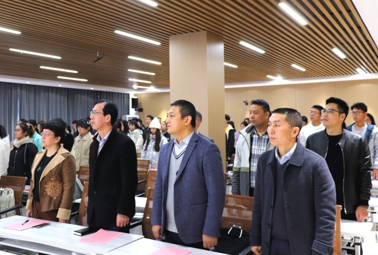 在启动仪式上,李玉琼指出,开展“法文化月”活动是宣传和弘扬法治文化,要以喜闻乐见的形式推广开来,要积极宣传习近平法治思想与十九届六中全会精神,勤于思考,提升专业水平,强化法律意识,树立社会主义法制观念,积极践行,成为普法的先行者、实行者和引带者。胡海波指出,“学史力行”实践团开展活动与法文化月的主题是高度契合的,在本届法文化月中,广大师生要通过各项活动开展真正把党史学习成果转化为为群众办实事的具体实践,让法治文化走进群众生活,为构建和谐社会做出自己力所能及的贡献。旷勇发表讲话,他充分肯定了法文化月系列活动的重要意义,强调本届法文化月主题的正确性,呼吁学生积极参与法文化月活动,投身法治实践,树立对法治的信任和践行。