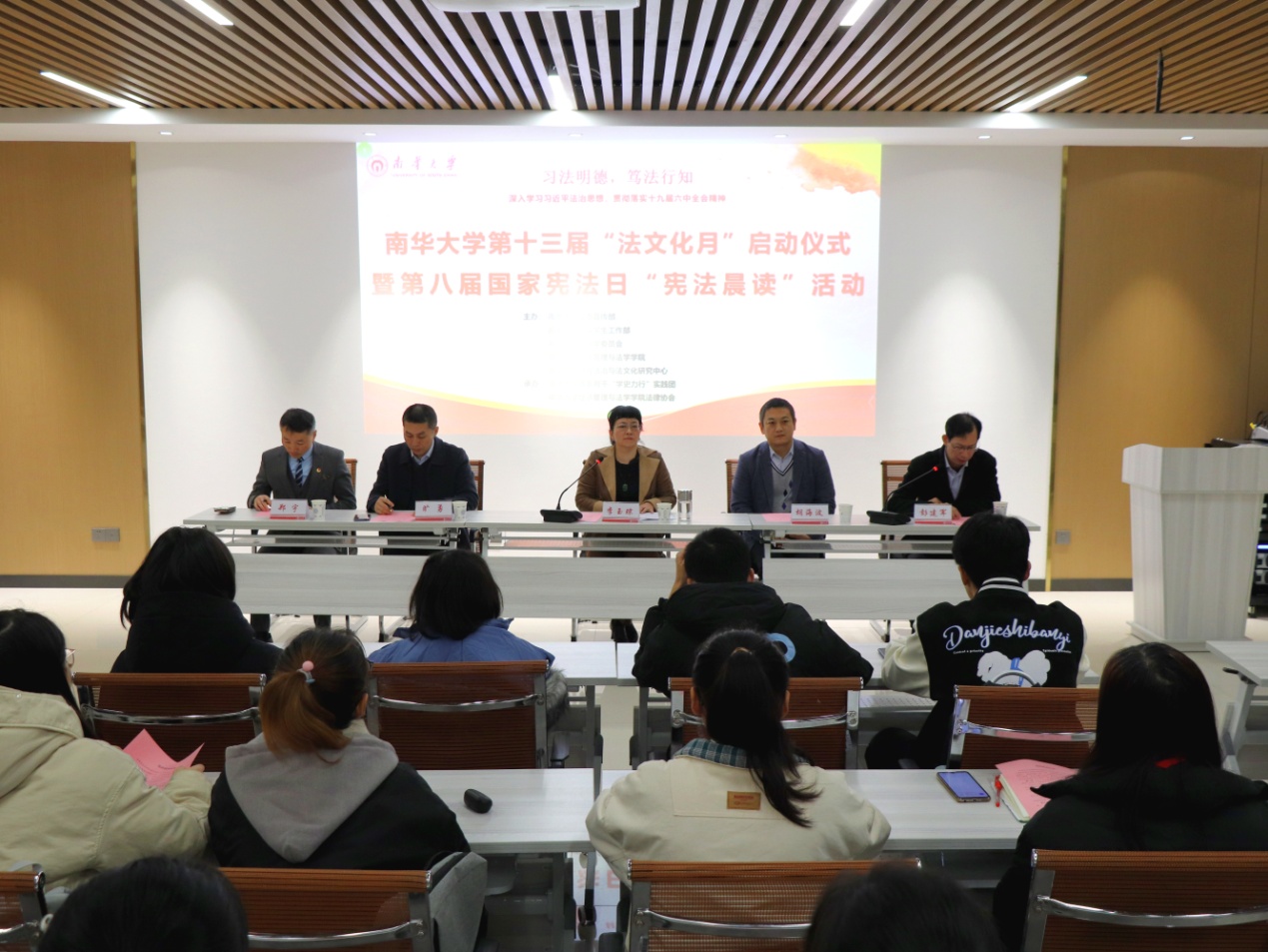 为了增强全社会的宪法意识,弘扬宪法精神,加强宪法实施,加大普法力度,推动全社会遵法学法守法用法,全面推进依法治国,深入宣传和学习习近平法治思想与十九届六中全会精神,扩大习近平法治思想与十九届六中全会精神的响力,12月3日,在PA电子雨母校区崇义楼310会议室,PA电子开展第十三届“法文化月”暨宪法晨读系列活动。出席本次活动的领导有PA电子地方法治与法文化研究中心负责人彭建军、校学史力行实践团团长胡海波、PA电子,PA电子院长李玉琼、校党委学工部副部长旷勇、校团委副书记郑宇,全体法律系老师和部分法学专业学生参加本次活动。