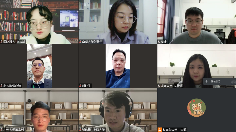 李俊清教授以“公共安全的区域之维,一个边疆安全的样本”为题,探讨了边疆地区存在的一般问题与民族宗教等交织的边疆民族地区冲突问题,强调重塑边疆地区安全韧性,建立全方位、多层次、立体化安全屏障的重要性。章文光教授围绕“‘三治融合’乡村治理”主题,介绍了“三治融合”的背景、意义和做法经验。朱春奎教授从气候政策态度研究的进阶与拓展出发,结合波士顿和纽约州应对气候变化的韧性城市建设历程,强调我国亟待加强应对气候变化的韧性城市建设战略研究和实践。颜佳华教授以“构建协同治理体系,推动人脸识别技术改良应用”为题,探讨构建人脸识别技术治理体系的必要性以及如何实现人脸识别技术协同治理要素的全方位聚焦。杨宏山教授通过介绍城市运行管理的理论发展和代际变迁,强调嵌入大数据分析和风险识别技术,加强城市运营数字化治理的重要性。刘鹏教授以“从风险社会到风险国家”为题,阐释了现代风险社会如何重塑行政国家的重大课题。米加宁教授围绕“应急社会动员能力评估”主题,结合国内国外实践情况,探讨应急社会动员能力的形成机制和分类逻辑。黄新华教授以“‘十四五’时期的应急管理:学科建设与人才培养”为题,从各个角度出发,探讨建设中国特色的应急管理学科的必要性。