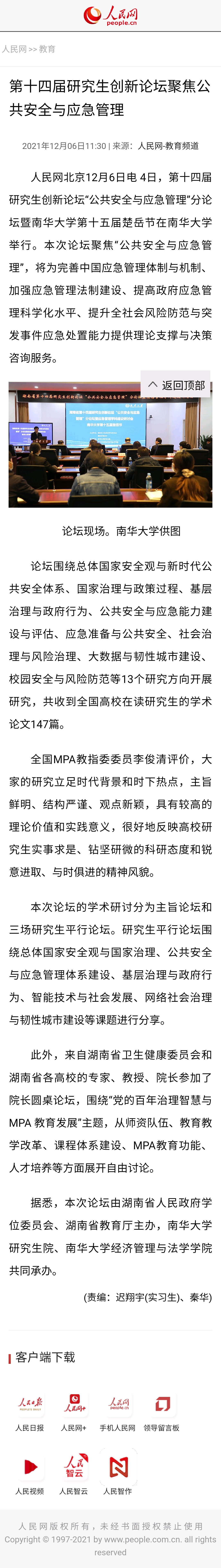 【人民网】第十四届研究生创新论坛聚焦公共安全与应急管理