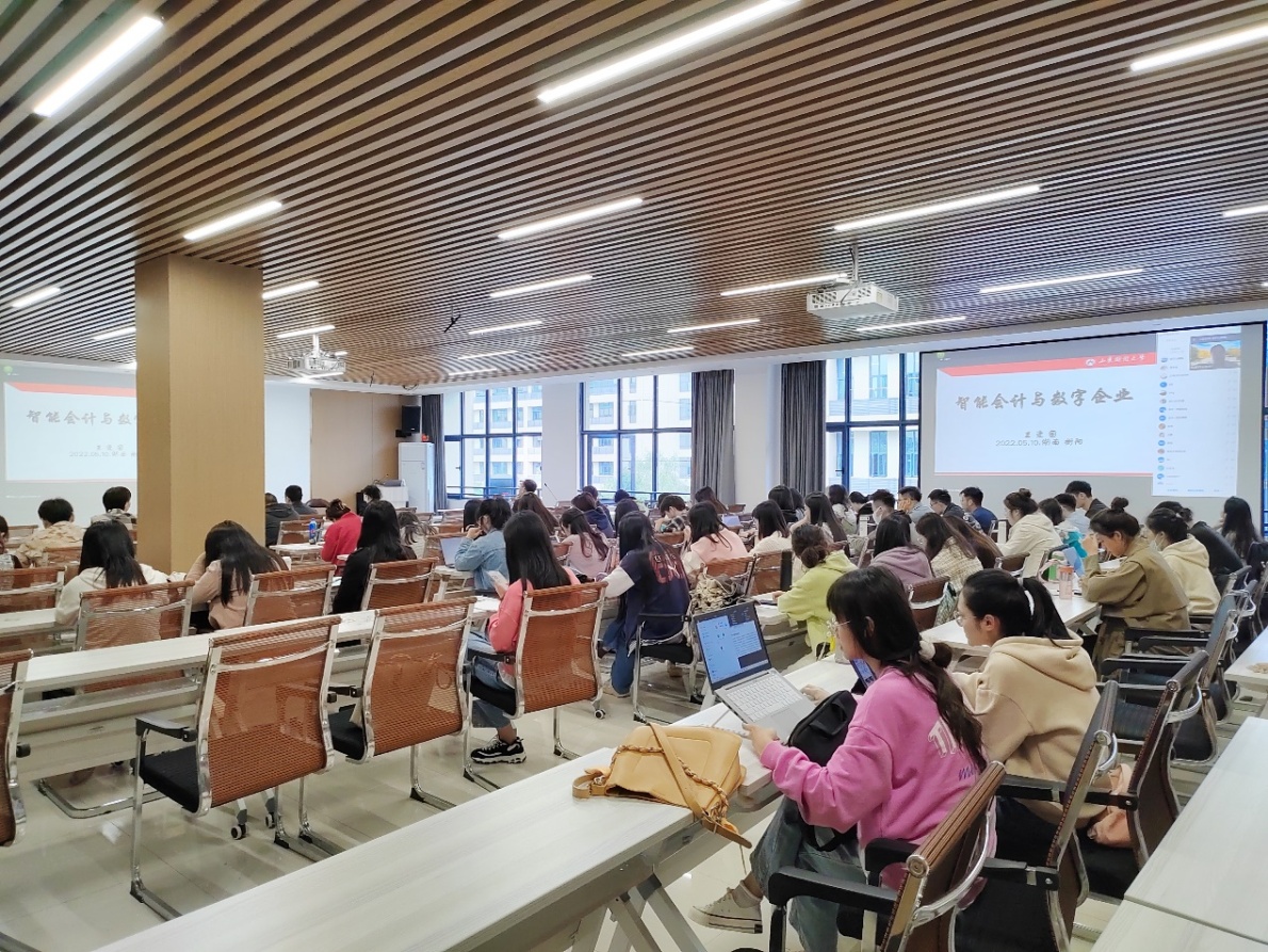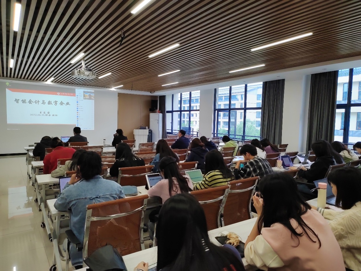 2022年5月10日下午,校研究生院与PA电子,PA电子特邀山东财经大学智能会计与数字企业研究院院长王爱国教授做题为“智能会计与数字企业”的学术讲座。本次讲座采用线上与线下相结合进行,线下会议由李玉琼院长主持,PA电子,PA电子部分老师和研究生于崇义楼南-310会议室参加,其余老师与研究生参加讲座线上的腾讯会议。