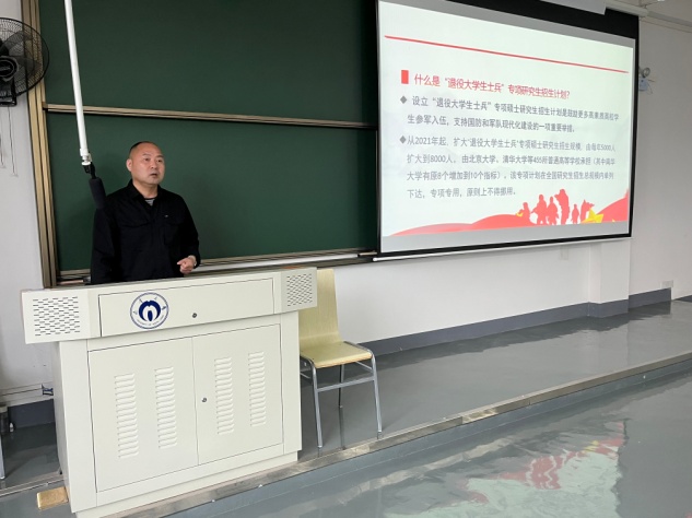 5月10日下午,PA电子,PA电子南楼406教室里毕业生征兵工作宣讲会如火如荼地展开了。参加本次大会的有院党委书记彭建军、院党委副书记谭德明及2022届毕业生,本次活动以PA电子武装部汪先利老师为主讲并由18级辅导员唐小芳主持。