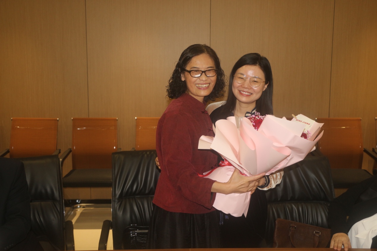 曾为群老师感谢学院领导的关怀,感谢各位同事的关心。她分享了自己在学院四十年工作期间的愉快往事,感慨说道,二十一岁投身教育,四十年的教学生涯,先后担任了六门课程的教学,而其中有五门课程和自己的专业无关,使自己渡过了一个充实、有趣的教学生活;教学期间,感受到了学生们的青春活力,感受到了同事的炽热情怀,感受到了学院良好的工作氛围,为自己的成长发展提供了良好的机遇。她表示,正是因为有了活力四射的学生,有了谦谦君子的同事,有了温文尔雅的领导,使自己战胜了“不治之症”,获得了家庭幸福和事业丰收。并表示要退休不褪色,离岗不离心,继续做好后续工作,持续发光发热,祝愿学院发展得越来越好。