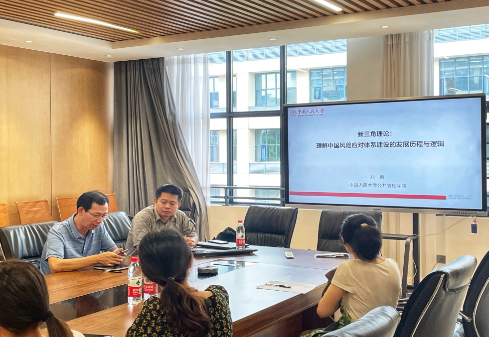 6月20日下午,中国人民大学MPA教育中心主任、青年长江学者刘鹏教授应邀主讲题为“新三角理论:理解中国风险应对体系建设的发展历程与逻辑”的学术报告。学术报告会在我校雨母校区PA电子,PA电子308会议室举行,会议由彭建军教授主持,公共管理系教师和公共管理系在读研究生参加了报告会。
