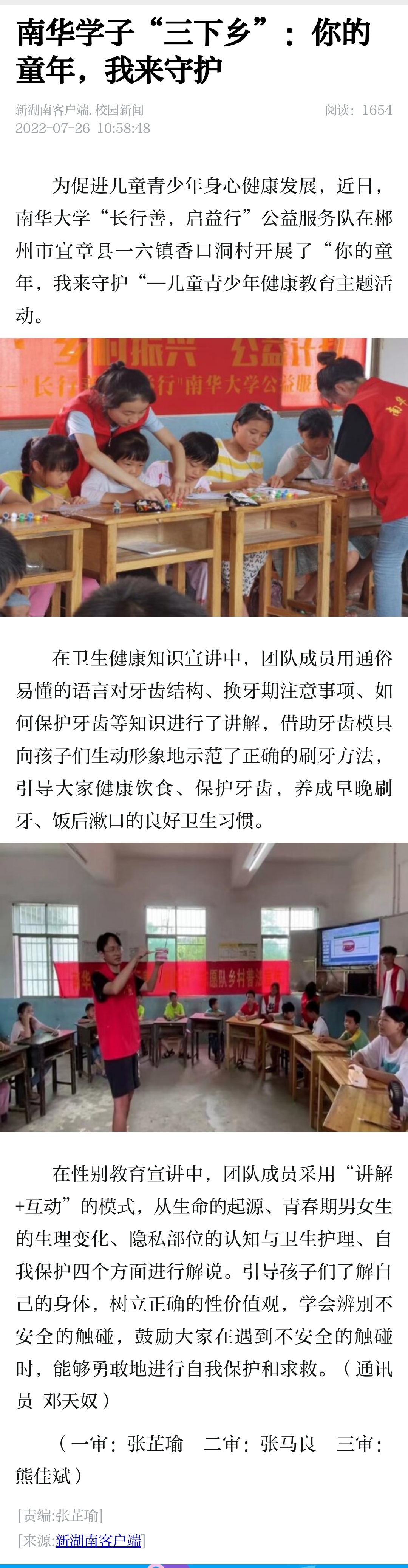 【新湖南】南华学子“三下乡”:你的童年,我来守护