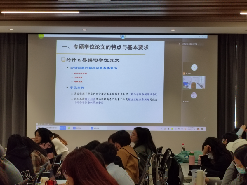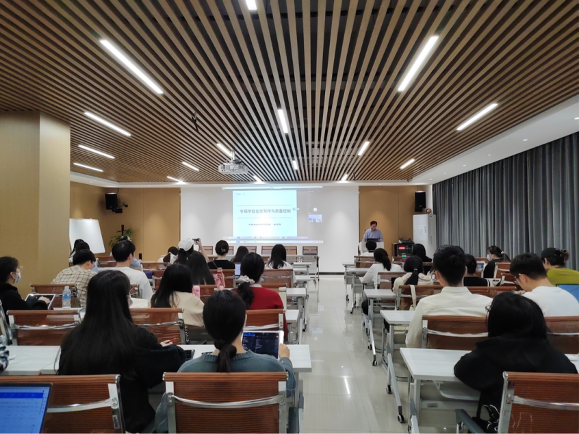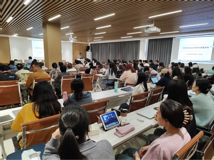 徐玉德教授的讲座从专硕论文写作中最基础的、最常见的问题入手,深入浅出地讲解了论文写作过程的实用步骤与方法,讲座内容条理清晰,逻辑缜密,对同学们的论文写作有积极的指导意义。本次讲座充满了浓厚的学术氛围,使与会师生受益匪浅,大家对学位论文的写作有了更加深刻的认识。