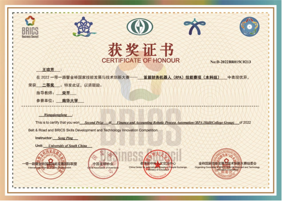2022年10月26日,2022年一带一路暨金砖国家技能发展与技术创新大赛财务机器人(RPA)技能竞赛决赛的获奖名单公布,PA电子会计学专业学生在全国数千名参赛者中脱颖而出,荣获全国一等奖1项、全国二等奖4项,全国优秀奖1项,会计系五位老师荣获优秀指导教师,同时在学校领导、教务部和经管法学院领导的关心支持下,我校还荣获大赛组委会颁发的最佳组织奖和优秀组织奖。该项比赛自2022年4月30日启动以来,比赛得到了全国26个省市自治区500余所院校、企业近10000名参赛选手和指导教师的积极参与。