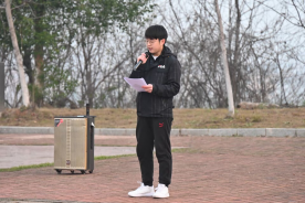 2022年度国家奖学金获得者、学院团委副书记、企管201班本科生王杰同学做了国旗下的演讲,他提出青年要有三当:“当坚定理想、当担当有为、当奋斗不息”,号召同学们立志做有理想、敢担当、能吃苦、肯奋斗的新时代青年,将国家命运与个人命运紧密相连。