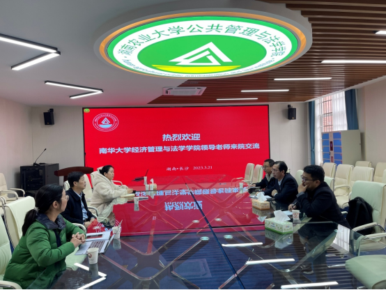 在湖南农业大学公共管理与法学学院六楼会议室,该院院长李燕凌、院党委书记林丽娅、副院长王薇、院办主任徐波参加座谈交流会。