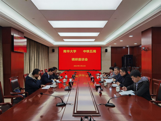 双方举行座谈交流。中铁五局人力资源部部长熊国胜首先热烈欢迎彭建军一行的来访,其次介绍了该公司的人力资源总体状况和人才队伍政策及福利待遇等情况,最后介绍了南华校友在该公司的发展成长情况并表示热烈欢迎南华学子到该公司就业奉献。彭建军感谢公司的热情接待,他介绍了学院的基本情况、人才培养特色。双方就大学生就业工作进行了深入交流。