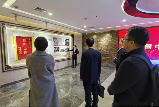 在中铁五局人力资源部副部长何萍的带领下,彭建军、谢天参观中铁五局文化馆,学习了解了该公司的发展历程、业务范围和重要成就,学习感悟了该公司以开路先锋为精神内核的企业文化。