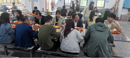陈国民与同学们同桌就餐,边吃边聊,关切地询问学生们的学习生活情况。同学们也少了往日的拘谨,各抒己见,畅所欲言,在与陈国民的交流中不仅谈饮食,谈住宿,还结合自己的专业学习话理想、说困惑、谈建议。陈国民在与同学们的交流中对同学们普遍关心的学校发展定位、学科建设、校区布局、人才队伍引进、科研创新平台打造、实践基地建设等问题耐心作了解答。他鼓励同学们要珍惜幸福的生活,努力学习,充实自我,不断培养自己的竞争意识、创新意识,早日成为社会栋梁之才。