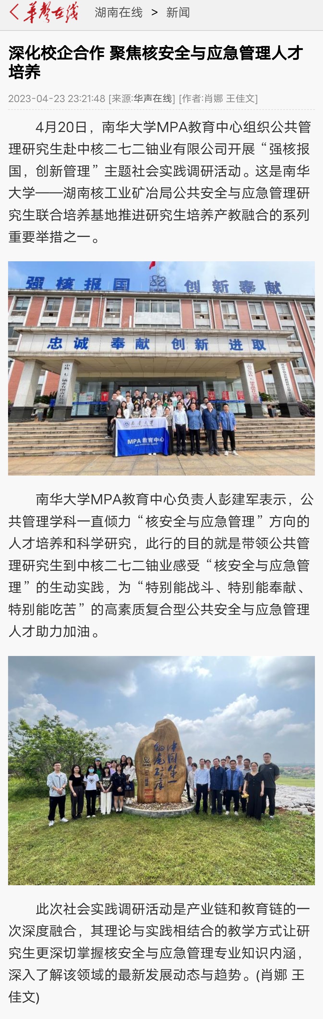【华声在线】深化校企合作 聚焦核安全与应急管理人才培养