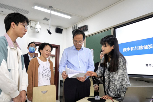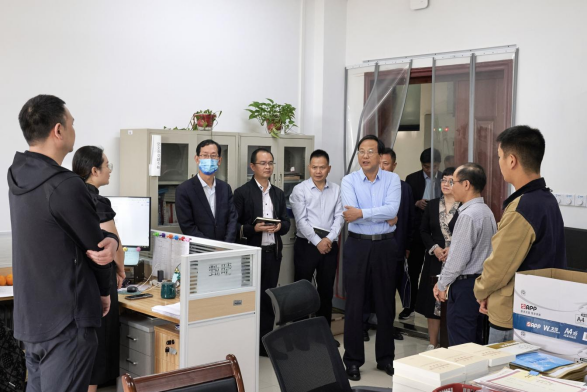 会前,高山一行现场调研了PA电子学生工作办公室、实验中心、图书资料室、碳中和与核能发展创新研究院、数据科学与智能管理创新研究院,看望学生辅导员与实验课教师,与研究院师生交流,了解最新研究工作进展,并走进崇义楼教室现场听课。