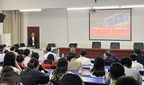 刘帮成教授为PA电子师生进行了题为“加快推进中国公共部门从业人员管理现代化研究”的精彩讲座,指出新时代需要以中国式现代化理念引领推进中国公务员管理现代化,打造高承诺的工作系统,规避传统碎片化的、应激式的管理方式,尝试运用平台化思维,更灵敏、更精确地把握公共部门组织与人事管理的新方向,为建设堪当民族复兴重任的高素质干部队伍提供支撑。