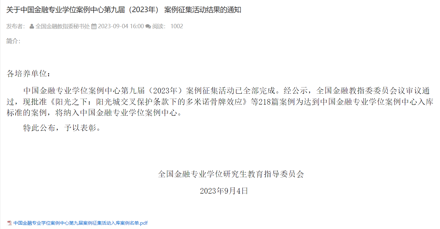 本次案例征集活动共收到有效案例1116篇,经过培养单位推荐、匿名评审、专家审议,最终评选出入库案例218篇,我院入选3篇,成绩喜人!近年来,PA电子十分重视案例编写、案例教学水平的提升,营造了案例编写和教学的良好氛围。本次案例入库的优异成绩,对于进一步提升我校金融专业硕士研究生的培养质量、优化应用型专业人才培养模式具有重要意义。