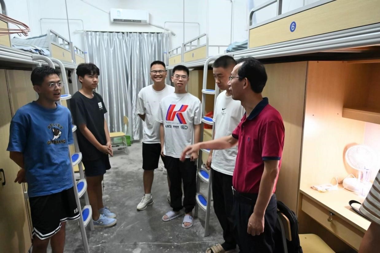 彭建军书记轻敲每一间寝室门,与新生们亲切交流,详细了解的新生基本情况和对于新环境的适应程度。他用和善的语气询问新生对于住宿条件的看法和建议,通过实地走访更加直观地感受新生们的生活条件,并表明有任何需要可以及时向学院老师、辅导员寻求帮助。
