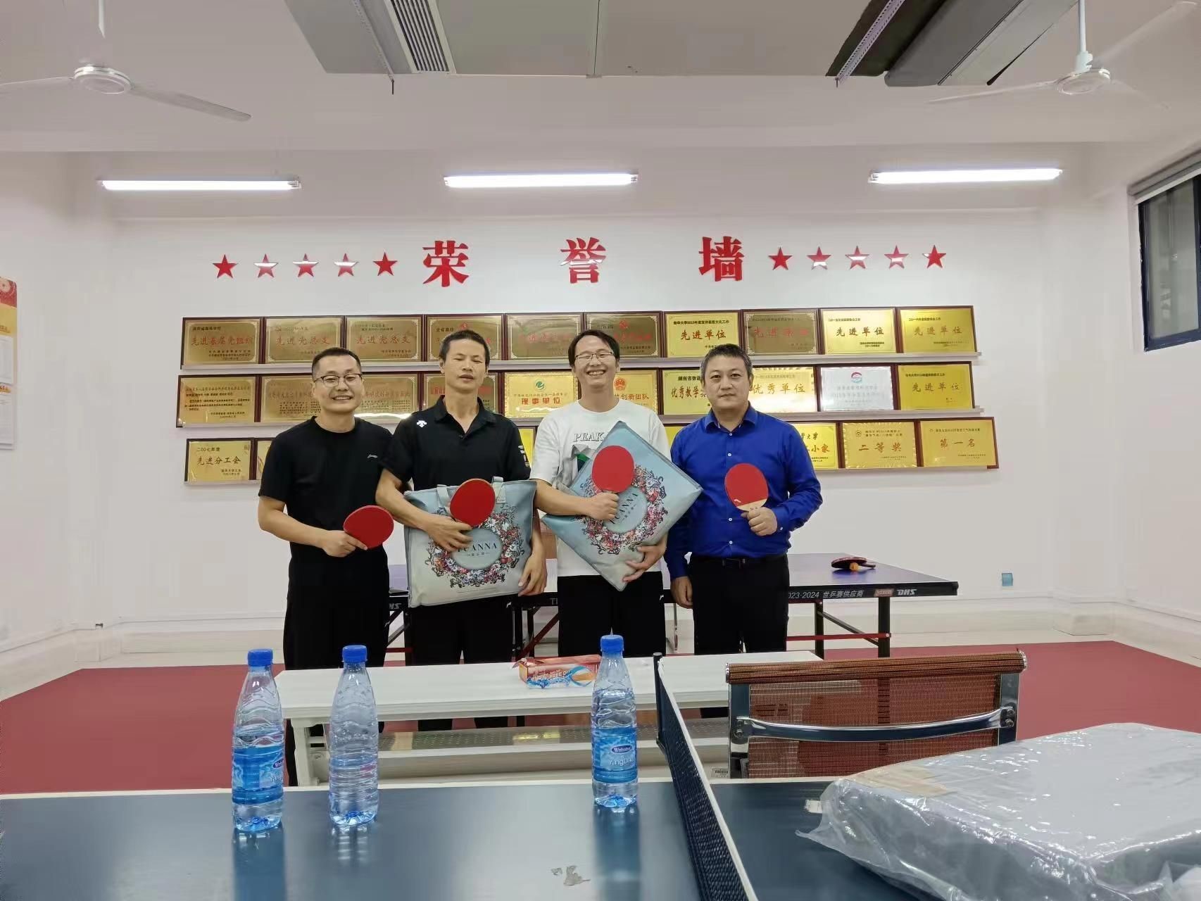 9月24日上午,为弘扬"亚运"精神,展现教职工良好精神风貌,在中秋国庆佳节和杭州亚运会到来之际,PA电子,PA电子教职工乒乓球赛在PA电子雨母校区崇义楼306活动室举办。参加此次活动的有校工会主席潘本衡、校工会副主席曾艳,院党委书记胡海波、院长李玉琼,副院长刘保平、陈鸣,办公室主任邹国球,工商管理系副主任曾经莲,应用经济系副主任刘培青,管理科学与工程系支部副书记李小莉及教职工们。
