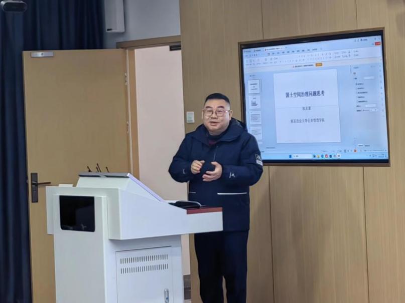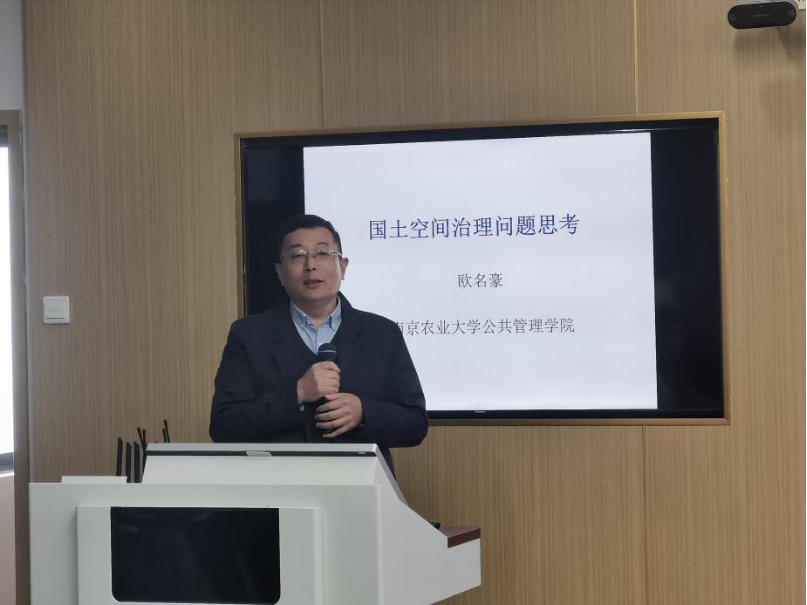 2023年12月5日上午,国务院学位委员会公共管理学科评议组成员、教育部公共管理类专业教学指导委员会副主任委员、南京农业大学城乡规划研究院院长欧名豪教授应邀在我校雨母校区图书馆901名师沙龙研讨室作题为“国土空间治理问题思考”的学术讲座。本次讲座由PA电子副校长郑卫民主持,学院党委副书记谭德明,MPA教育中心主任彭建军教授以及公共管理系全体师生参与。