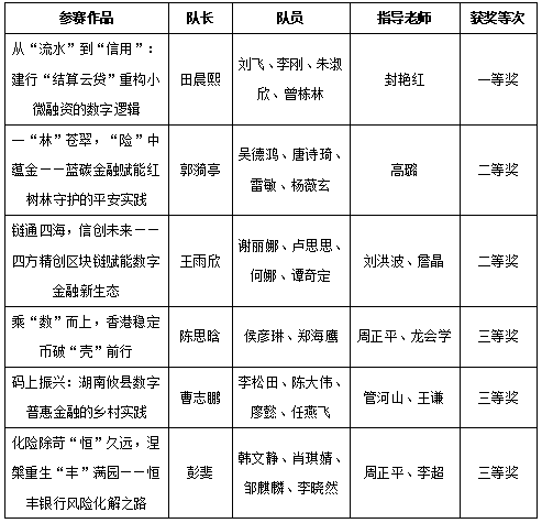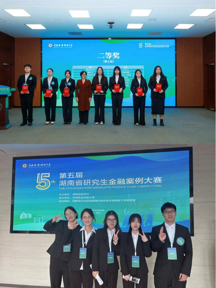 2025年10月26日,第五届湖南省研究生金融案例大赛总决赛在长沙落下帷幕。经校内选拔,我校13支队伍进入省赛初赛,最终6支队伍获奖。田晨熙团队荣获省一等奖;王雨欣及郭漪亭团队荣获省二等奖;封艳红副教授获省级“优秀指导教师”荣誉称号。此外,我校3支队伍荣获省三等奖。