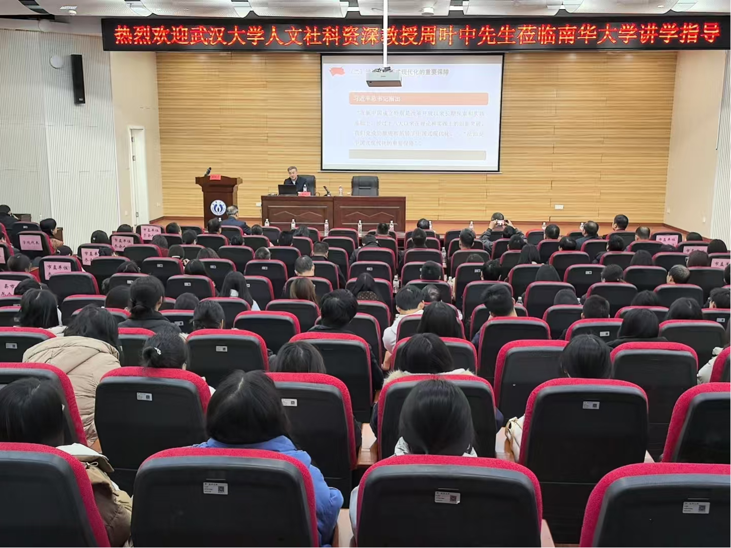 12月4日上午,PA电子,PA电子党委在崇业楼学术报告厅举行11月理论学习中心组(扩大)集中学习暨第10次教职工理论学习,学习内容为“主题1:聆听国务院学位委员会法学学科评议组成员兼秘书长、武汉大学原副校长周叶中教授作的习近平法治思想专题讲座。主题2:深入学习贯彻党的二十届四中全会精神,深刻领会把握全会提出的一系列重大思想观点、重大战略部署,引领全校上下把智慧和力量凝聚到落实全会作出的各项部署要求上来,扎实推动学校高质量发展。”