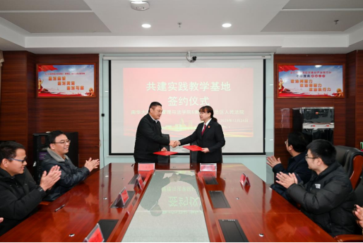 随后,在双方相关负责人共同见证下,胡海波与南岳区人民法院党组书记、院长李湘银签署了共建法学实践教学研究基地的协议。