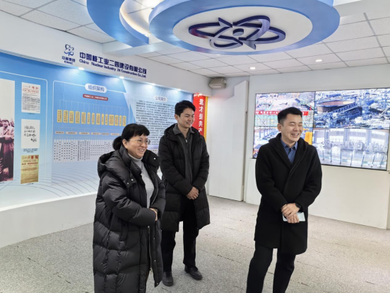 交流伊始,李玉琼院长在中核二四建设有限公司人力资源部齐家戈的陪同下,参观了公司展览馆。在讲解员的细致介绍中,李玉琼院长一行全面了解了中核二四建设有限公司的发展历程,深切感悟到企业深耕核行业、服务国家核工业建设的责任担当与卓越贡献,为后续校企合作交流奠定了良好基础。