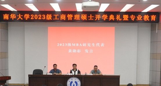 2023级MBA代表黄勋彰在发言中,代表所有新生郑重承诺:以最饱满的热情,最全面的投入,最实际的行动来完成未来的学业:一是正确处理好学习和工作的关系,遵守学习纪律,保证学习时间,认真完成课内课外作业;二是尊重老师,团结同学,平等交流,共同进步;三是积极讨论,理论联系实际,将学到的知识运用于日常工作的实践中去,不辜负领导和老师对我们的期望!