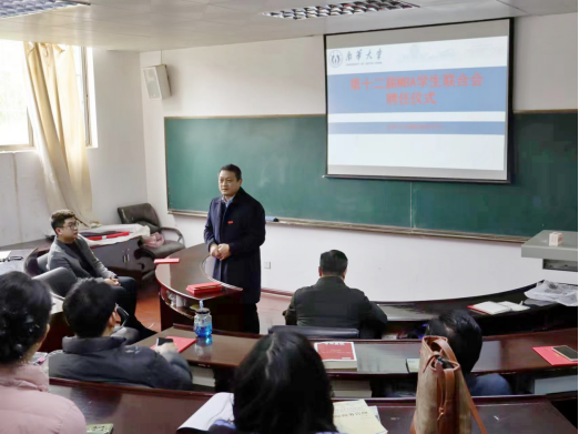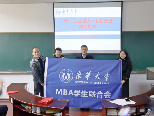 MBA教育中心主任雷振华宣读了第十二届MBA联合会聘任文件,院党委书记胡海波授MBA联合会会旗并为会员们颁发了任职聘书。胡书记对新一届联合会的成立表示祝贺,对历届联合会的辛勤付出与奉献表示感谢,就MBA联合会工作,他提出了三点希望:一是加强与各学校、历届同学的联动与合作,进一步提升PA电子MBA项目的品牌影响力;二是充分利用好联合会平台,强化学术交流,在实现个人成长之余,为学院、联合会做优做强贡献智慧和力量;三是创新开展联合会特色工作,弘扬“勤勉务实、甘于奉献、刚健自强、敢为人先”的南华精神,持续擦亮“PA电子MBA”品牌,为MBA再续华章贡献智慧和力量。
