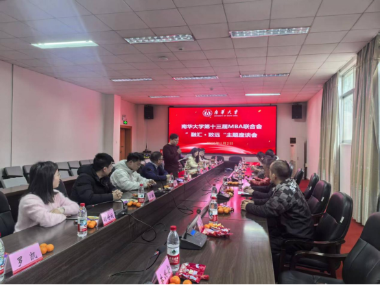 1月2日,由第十三届MBA联合会主办的MBA校友座谈会在红湘校区图书馆二层会议室圆满召开。本次座谈会以“融汇·致远”为核心主题,由联合会主席王锋主持,经管法学院领导、资深校友代表、在校学子及教师代表近20人齐聚一堂,共叙情谊、共话发展。活动以圆桌座谈结合自由交流的形式展开,打破层级与身份界限,搭建起“学院 - 校友 - 在校生”共生共荣的沟通平台。与会人员围绕个人成长路径、职业发展规划、行业前沿趋势、校企合作方向等话题畅所欲言,在校学子积极请教求学与求职的经验技巧,资深校友分享职场打拼的宝贵心得,学院领导与教师代表则立足学科建设与人才培养目标,为各方发展建言献策。